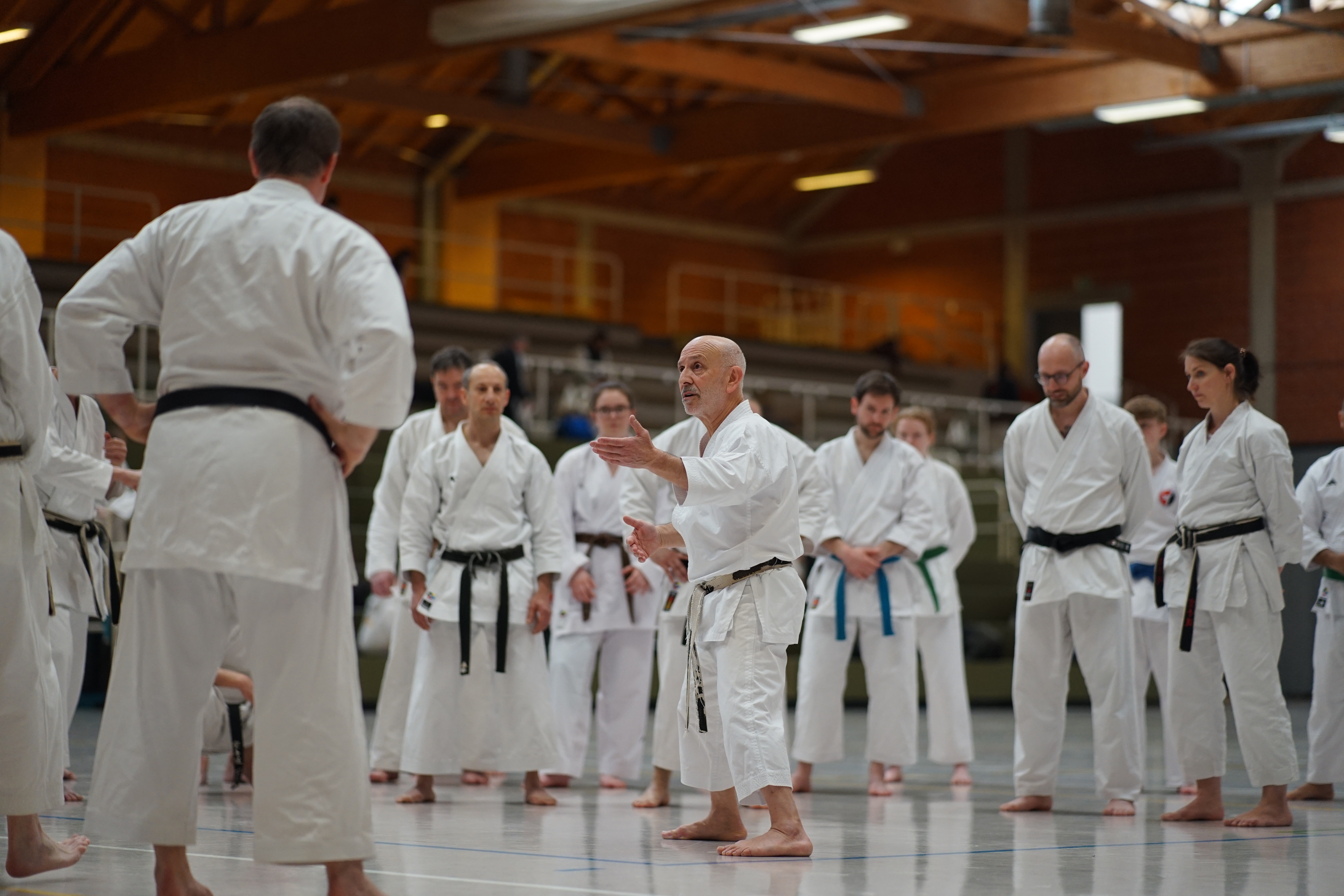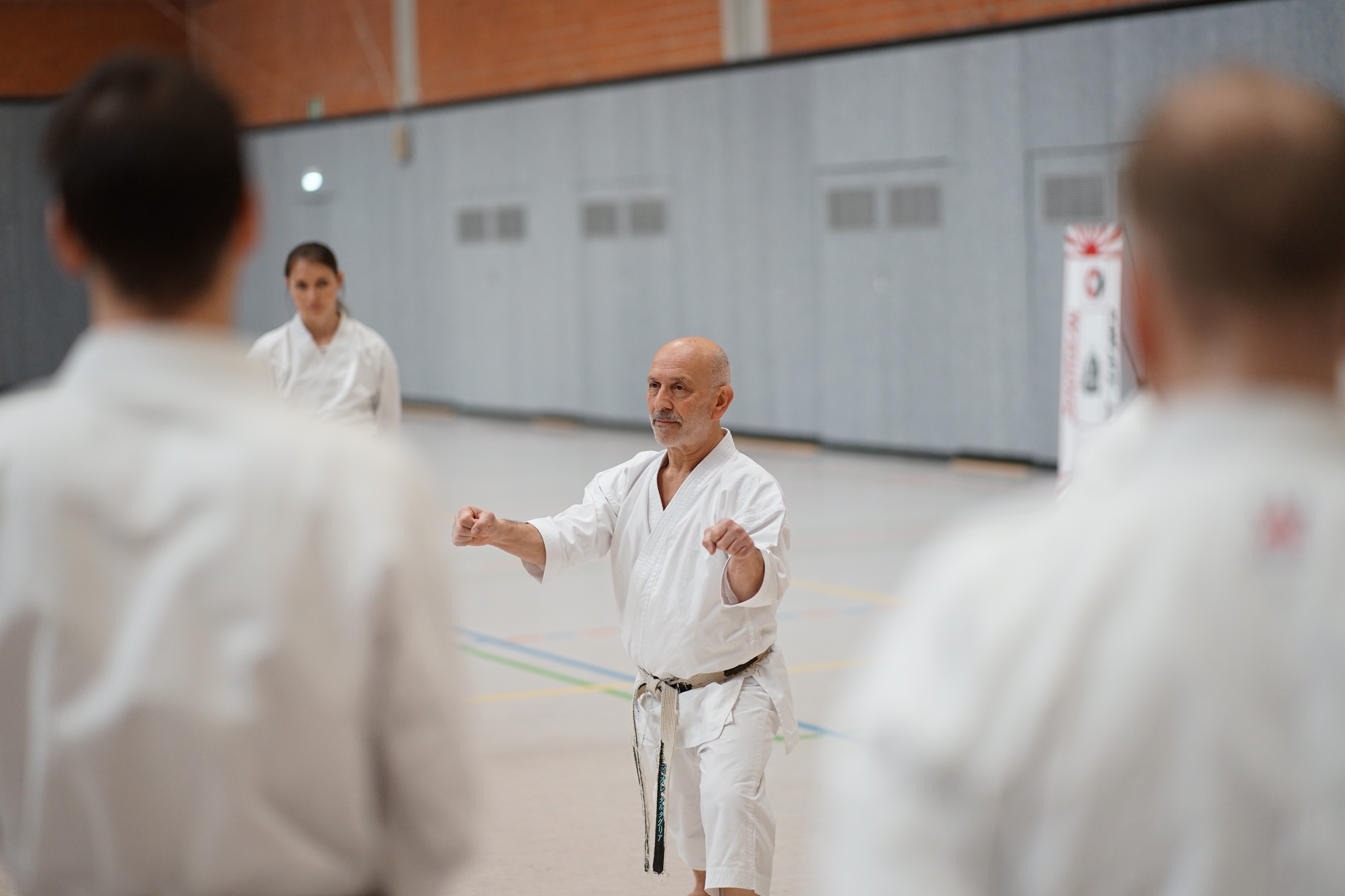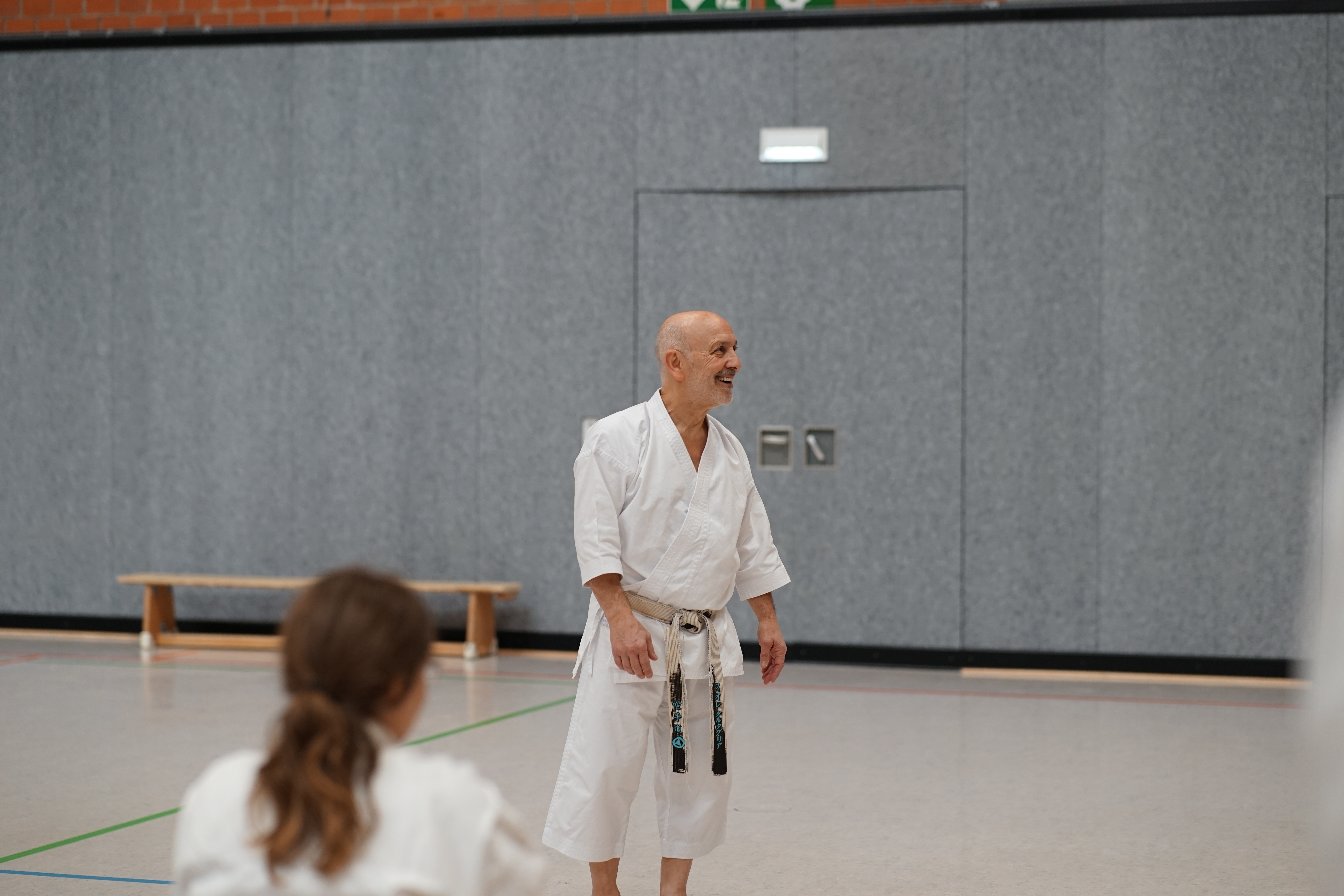 Besonders in Erinnerung bleiben wird ein wiederkehrender Satz von Fiore Tartaglia, der sinnbildlich für seine Lehrweise steht: „Das war gut, aber…“ Was zunächst wie eine einfache Korrektur klingt, entwickelte sich im Laufe des Tages zu einer zentralen Botschaft: Karate ist ein lebenslanger Lernprozess. Jede Technik – so gut sie auch ausgeführt sein mag – kann weiter verfeinert werden. Immer wieder eröffnen sich neue Blickwinkel, neue Details und neue Möglichkeiten zur Verbesserung.